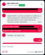 Не так давно я зарегистрировался на cafe-in.bet Закинул может с тысячу всего или типо того, может меньше. Попросил удалить аккаунт, так как в последний раз 200 рублей не пришли по депозиту. Попросил их вежливо. Они пошли на встречу, удалили.